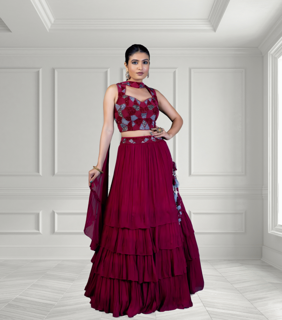 Jortjart fablic in maroon color lehenga comes with a classy dupatta and an elegant khatli hand work blouse.